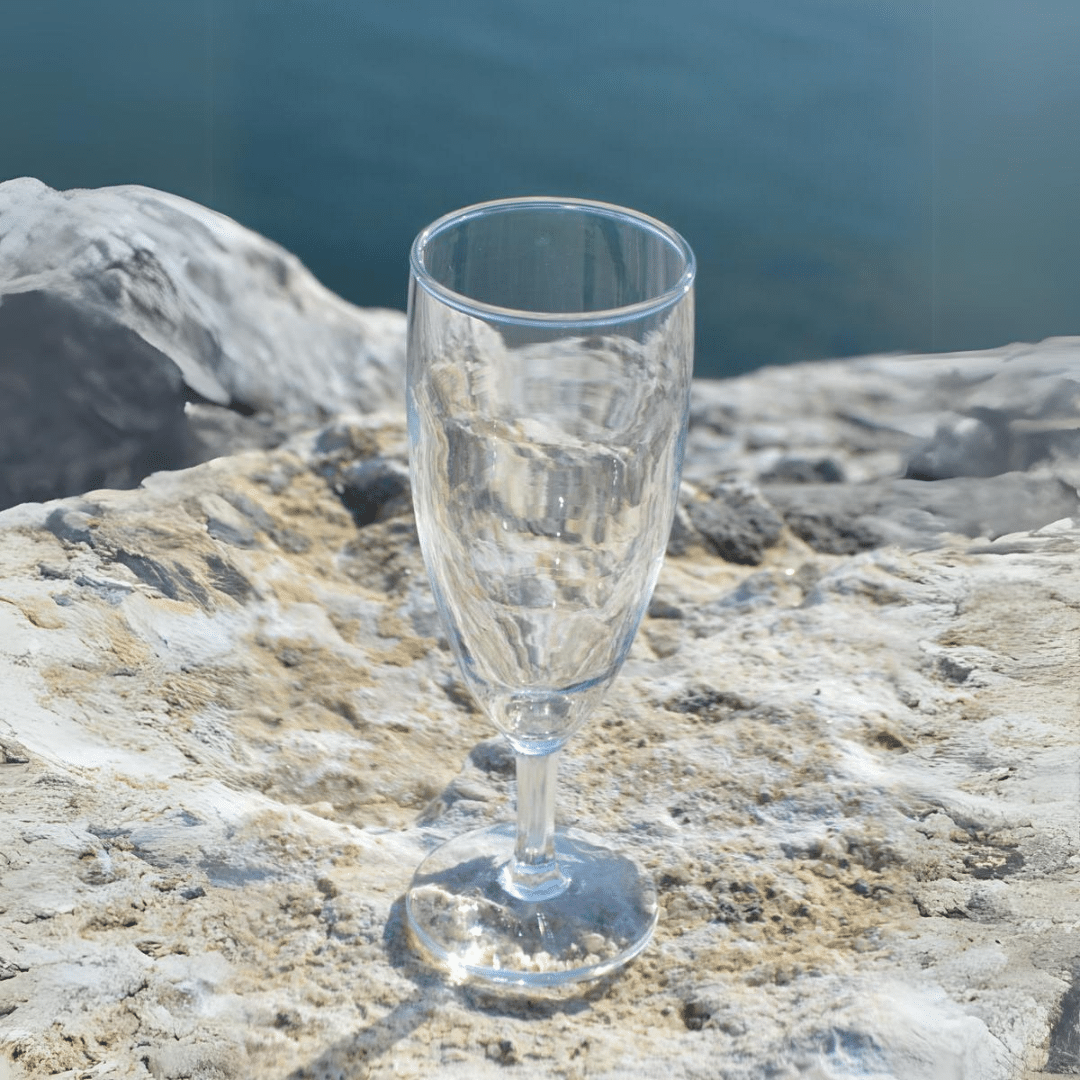 Verre à eau 24cl, Verre à vin 18cl, Flûte à champagne 17cl.